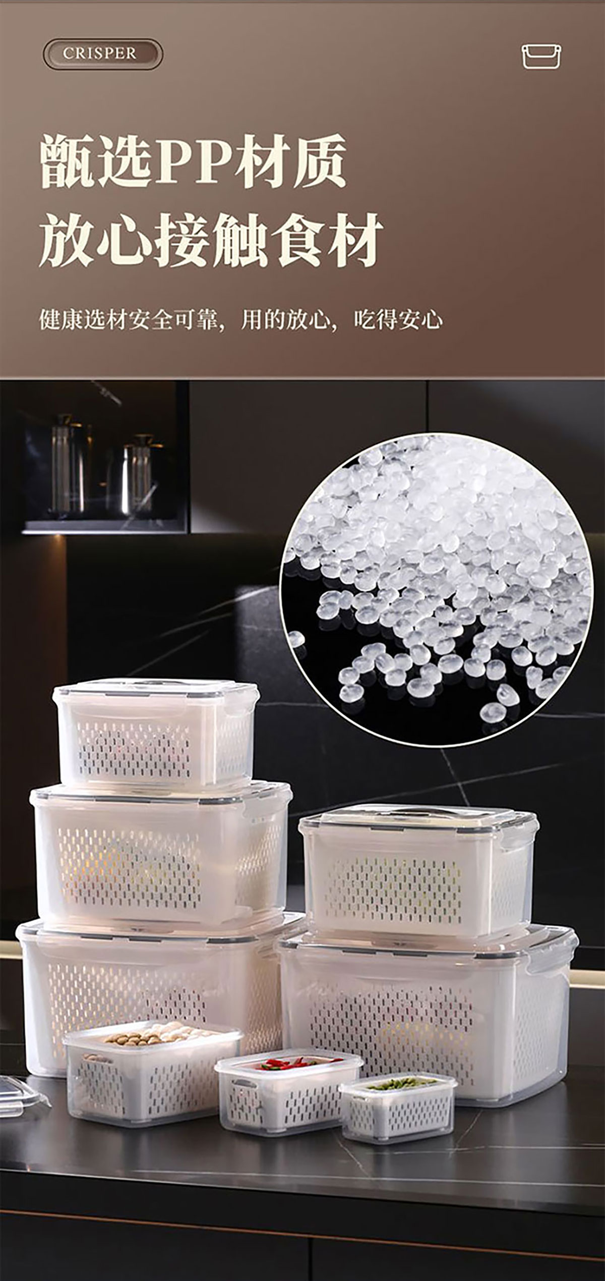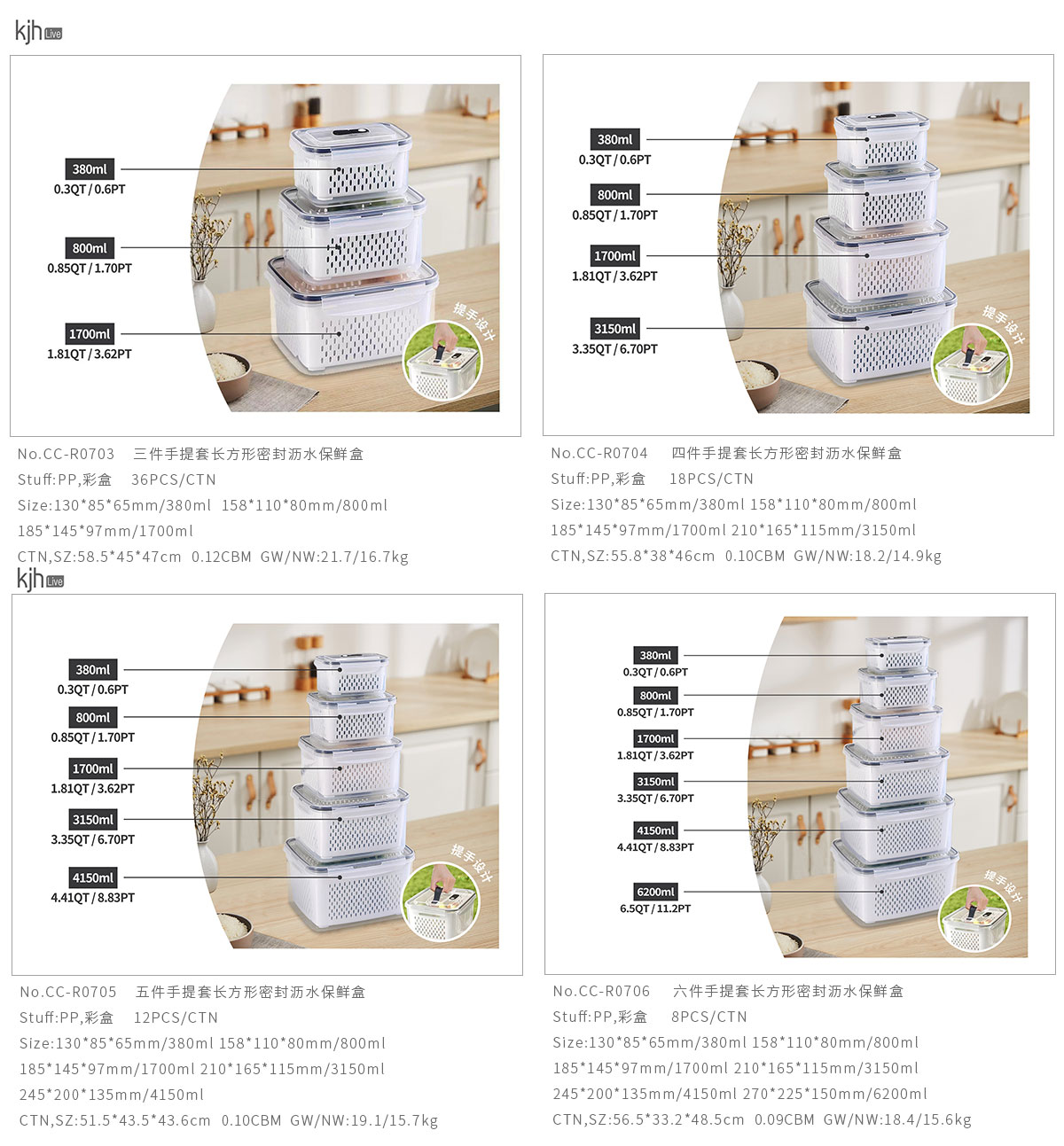 三件/四件/五件/六件/七件手提套長(zhǎng)方形密封瀝水保鮮盒