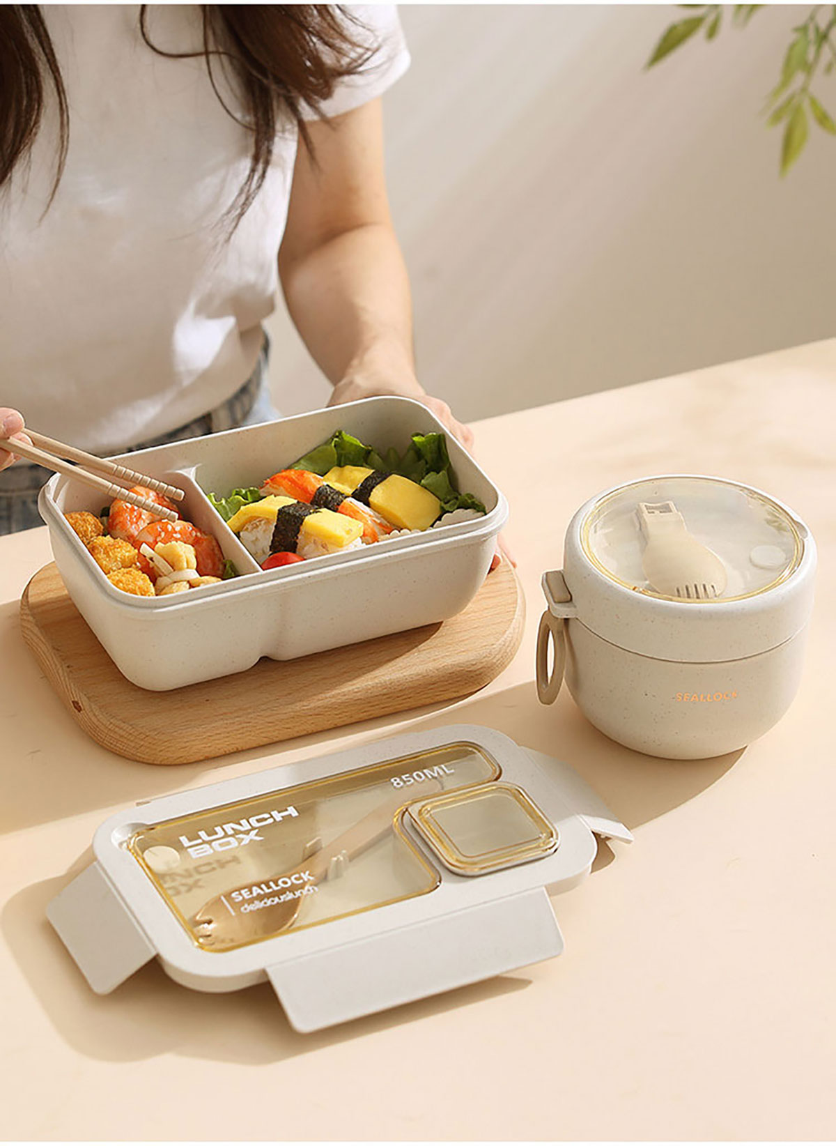 簡麥便當(dāng)盒飯盒/套裝(飯盒+水杯/飯盒+水杯+灰色餐袋/飯盒+燕麥杯+灰色餐袋)