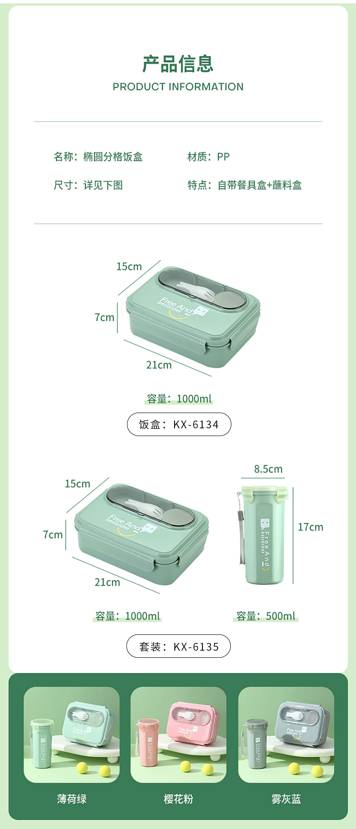 Size: KX-6134:210*150*70mm/1000ml KX-6135:飯盒:210*150*70mm/1000ml 水壺:Φ85*170mm/500ml