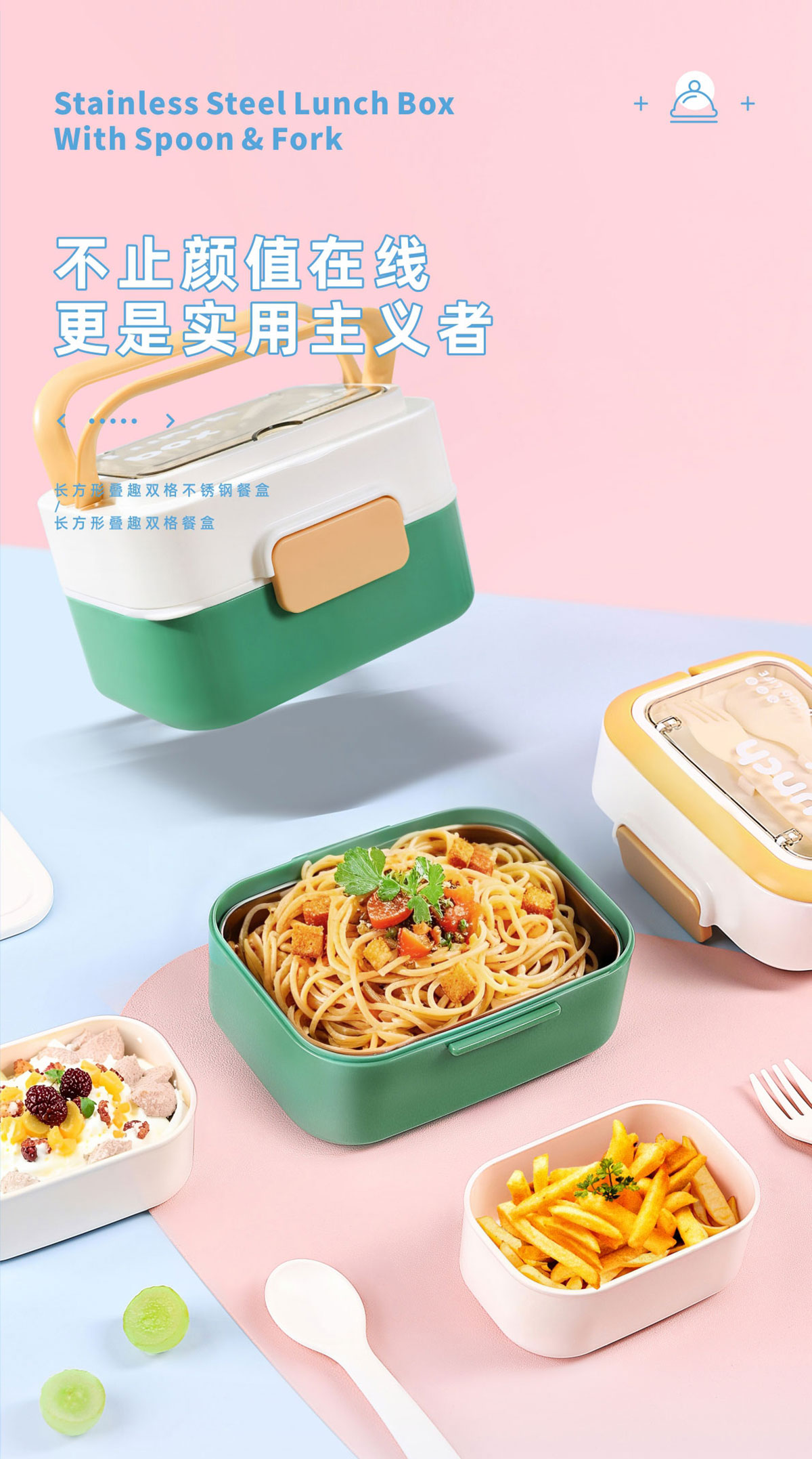 長方形疊趣雙格不銹鋼款/PP款餐盒