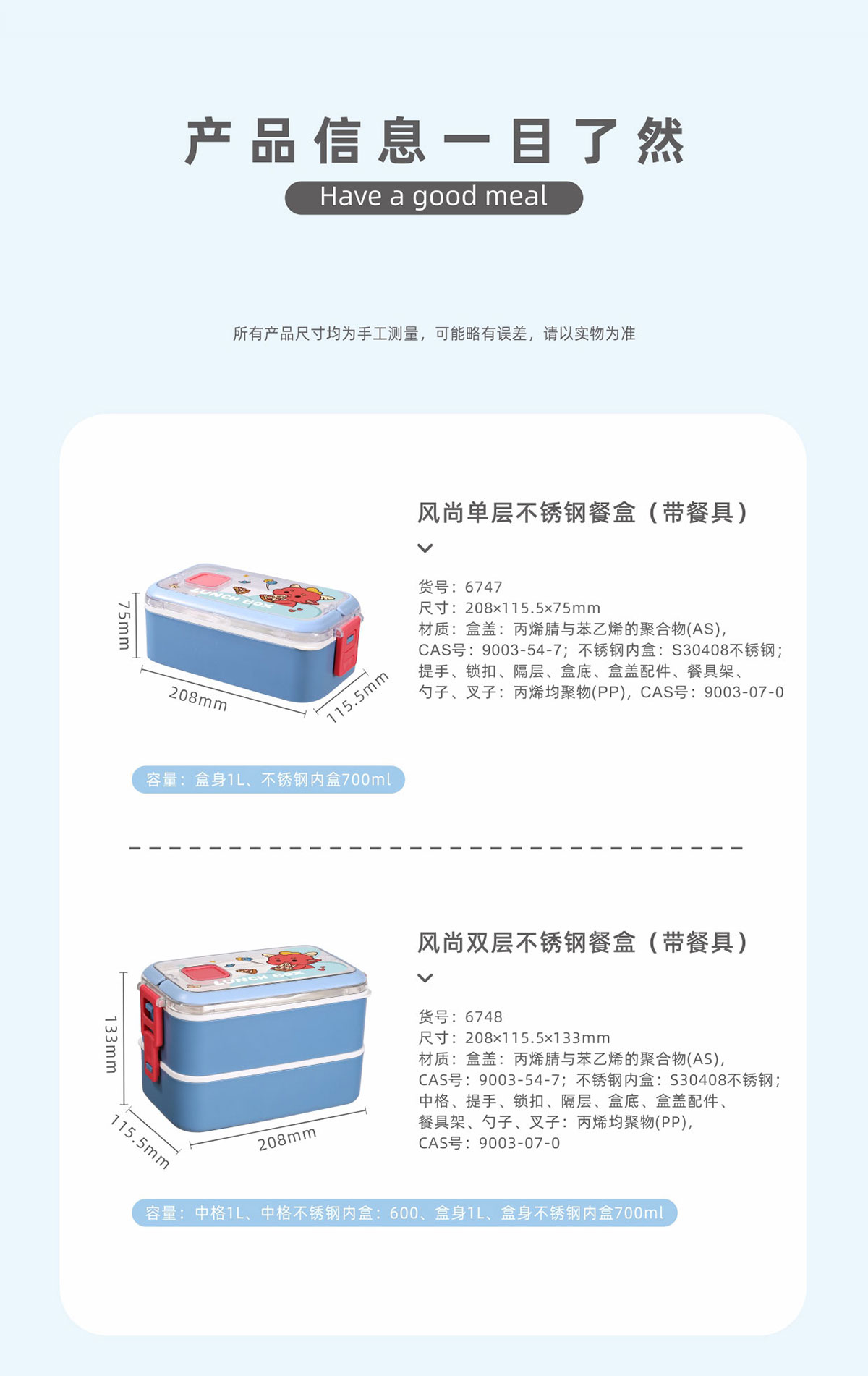 Size: HM-6747(單層):208*112*75mm HM-6748(雙層):208*112*133mm