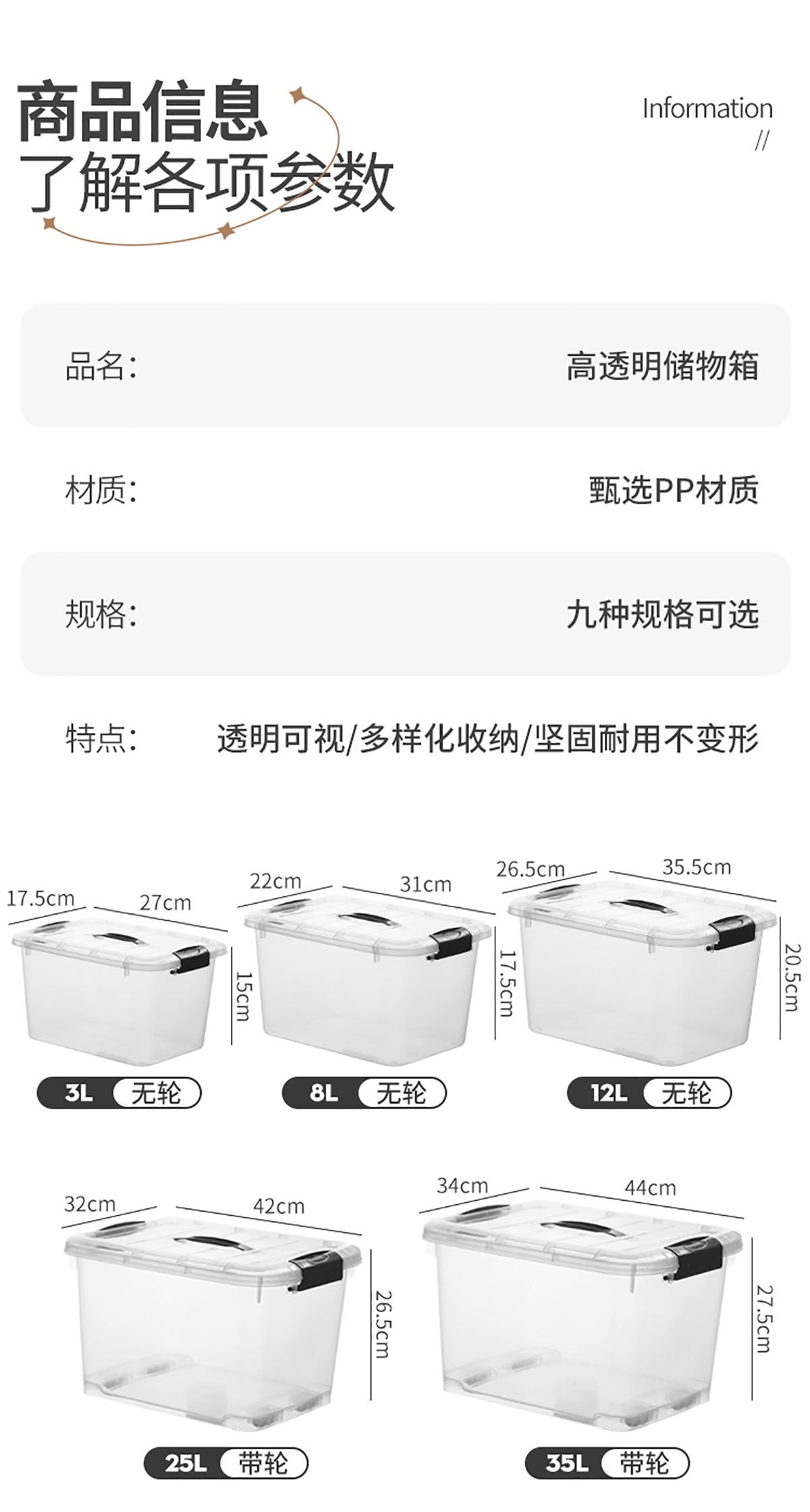 高透明儲(chǔ)物箱3L/8L/12L/25L/35L/45L/55L75L/100L