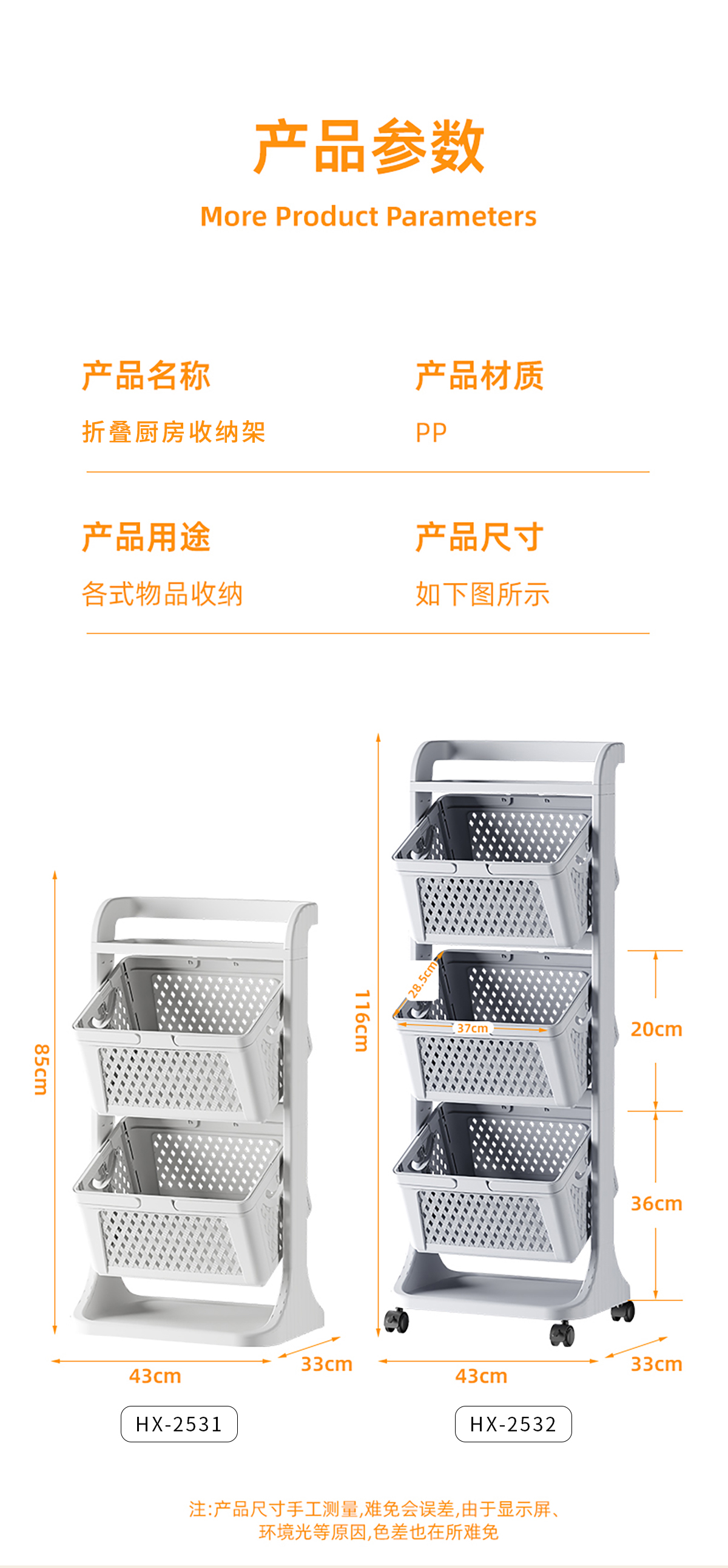 Size: HX-2531(二層):430*330*850mm HX-2532(三層):430*330*1160mm