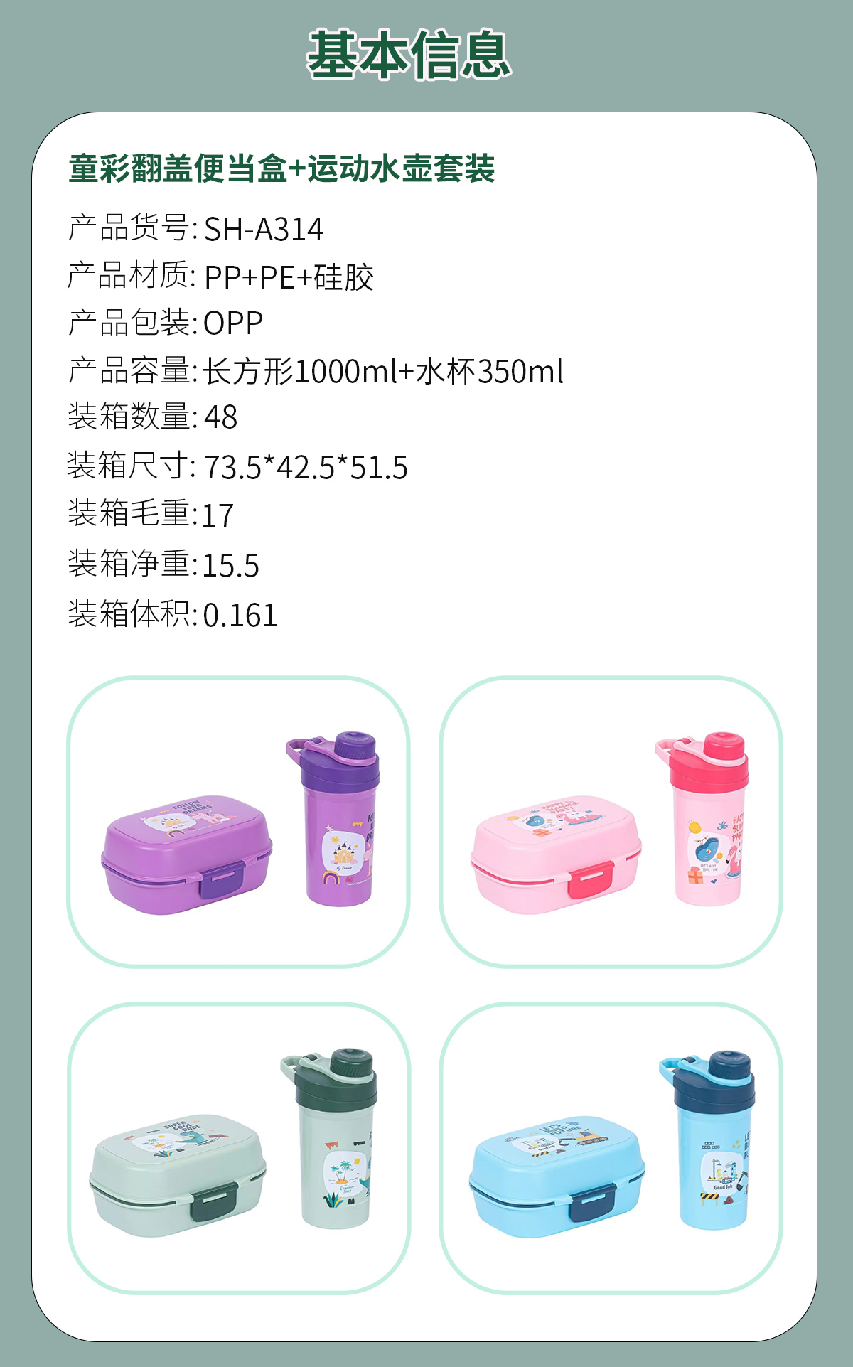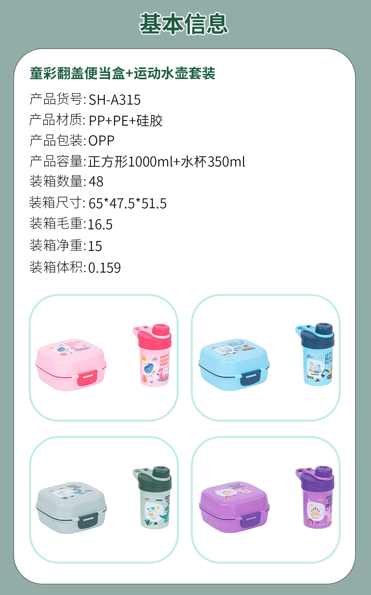 SH-A315:正方形1000ml+水杯350ml