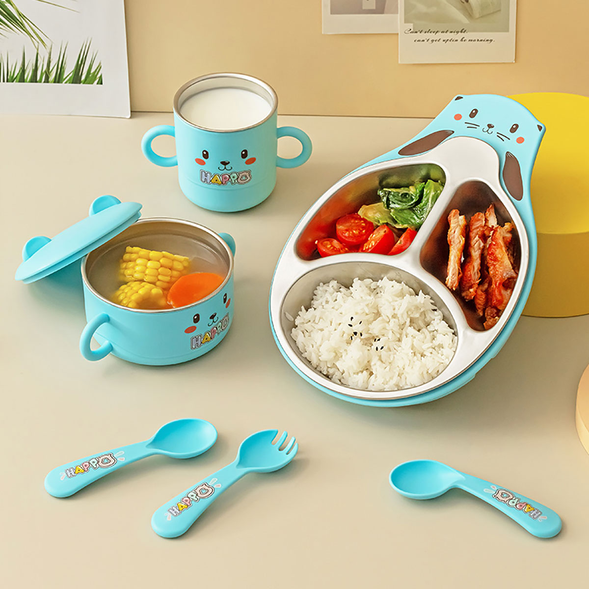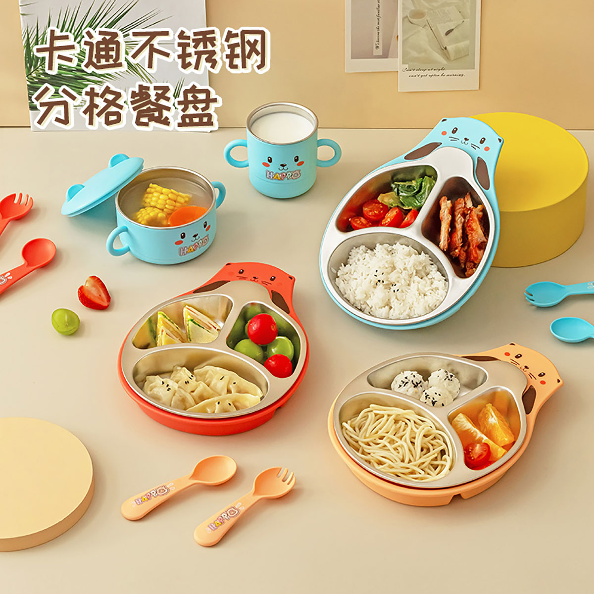 Size: 餐盤(pán)260*196*40mm/碗160*110*80mm/杯140*80*83mm/勺叉125mm