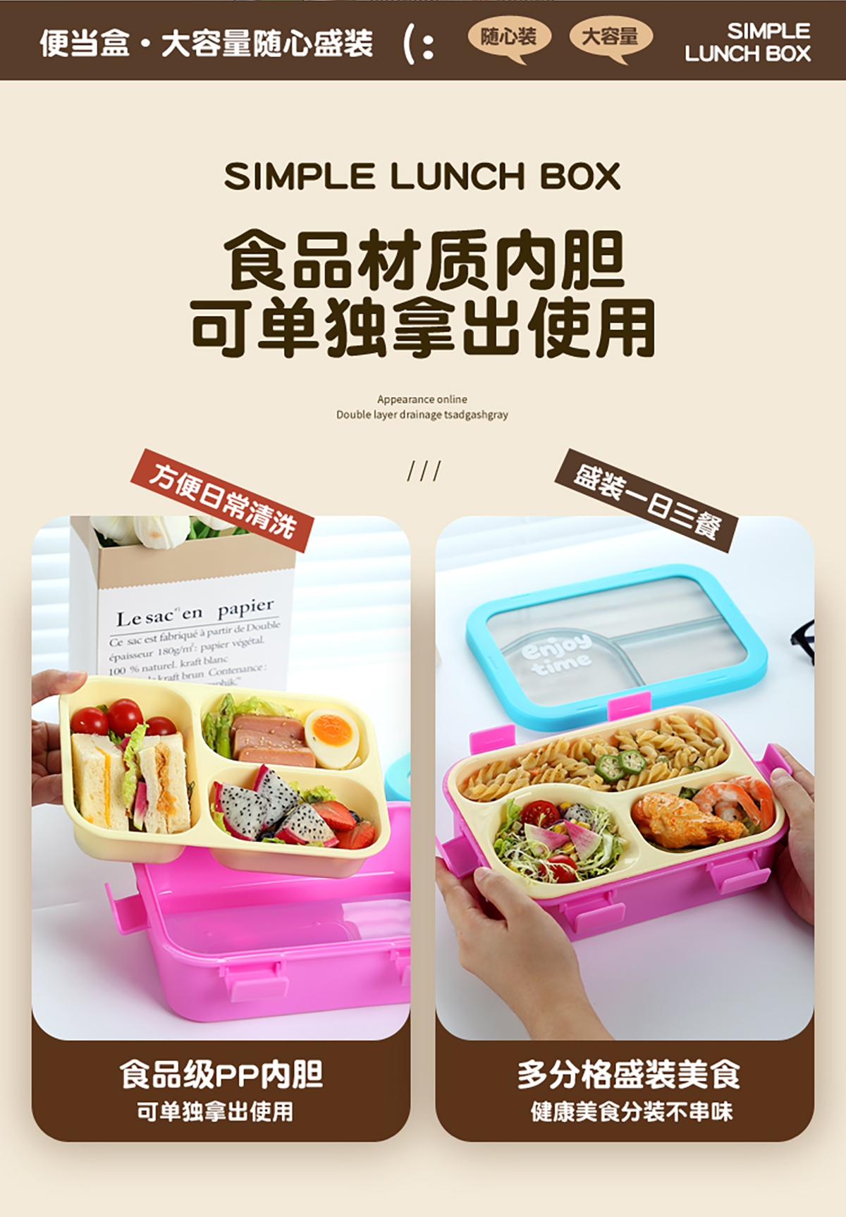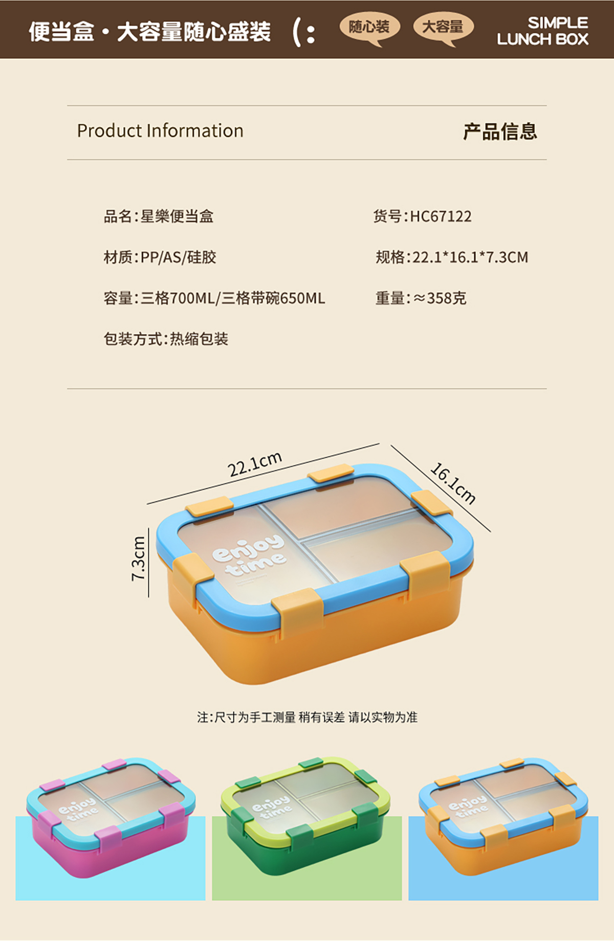 Size: 221*161*73mm(三格700ml/三格碗型650ml)