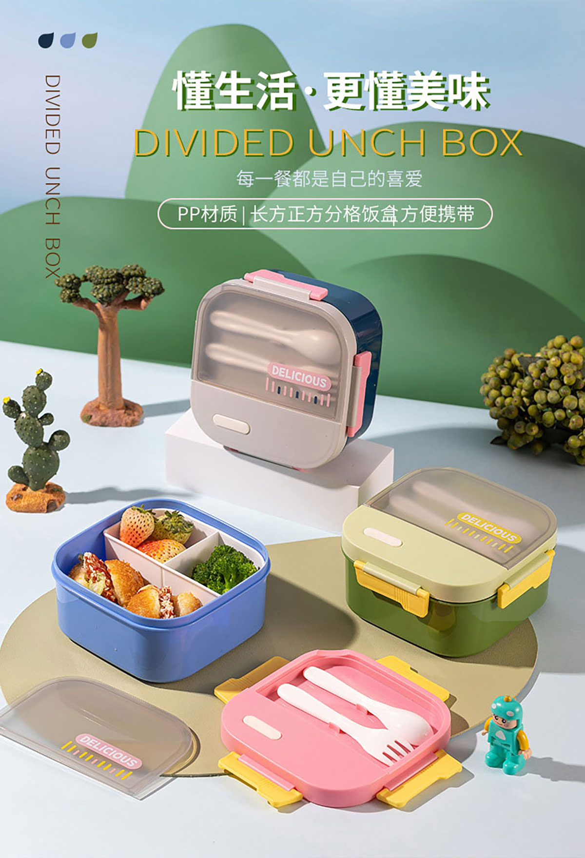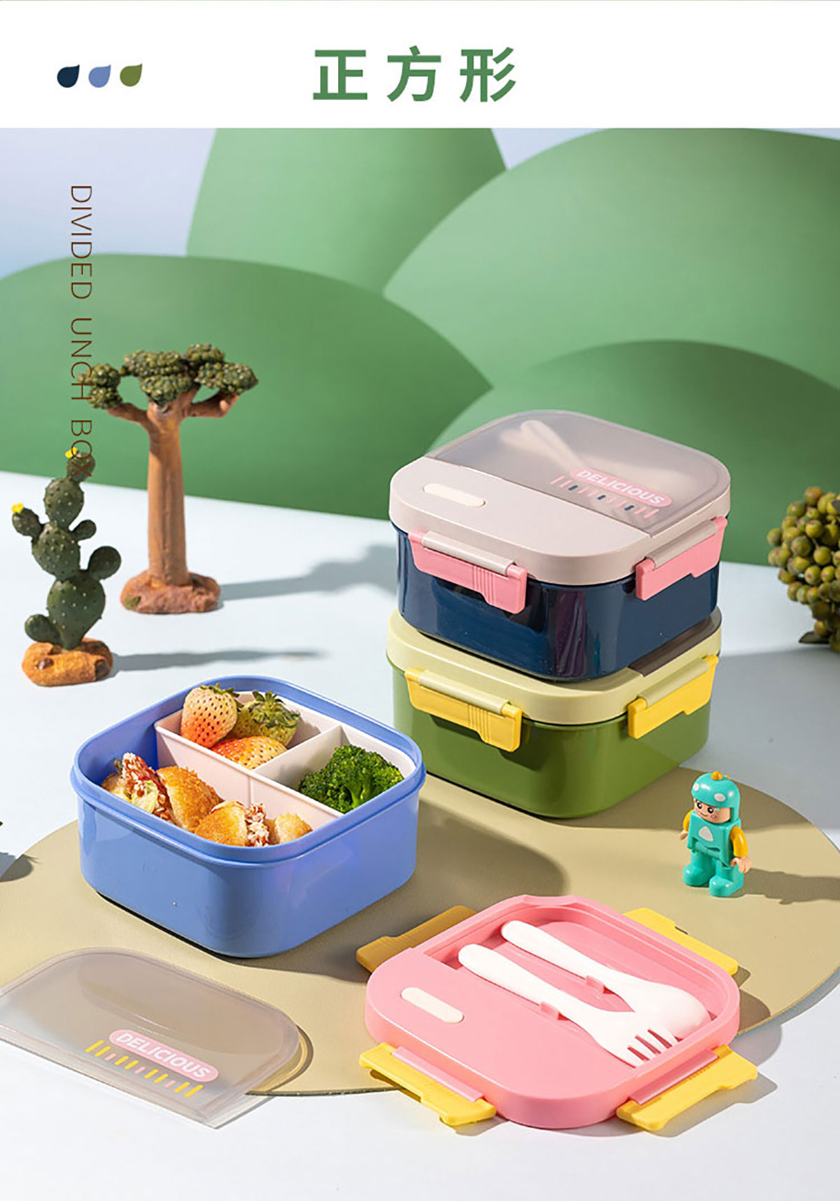 飯盒1250ml(帶餐具+獨(dú)立分盒)