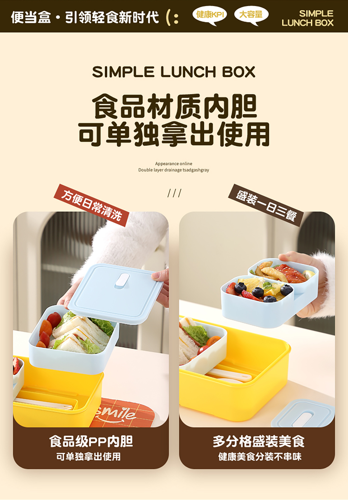 Size: 221*151*70mm/大內(nèi)盒470ml/小內(nèi)盒165ml*2