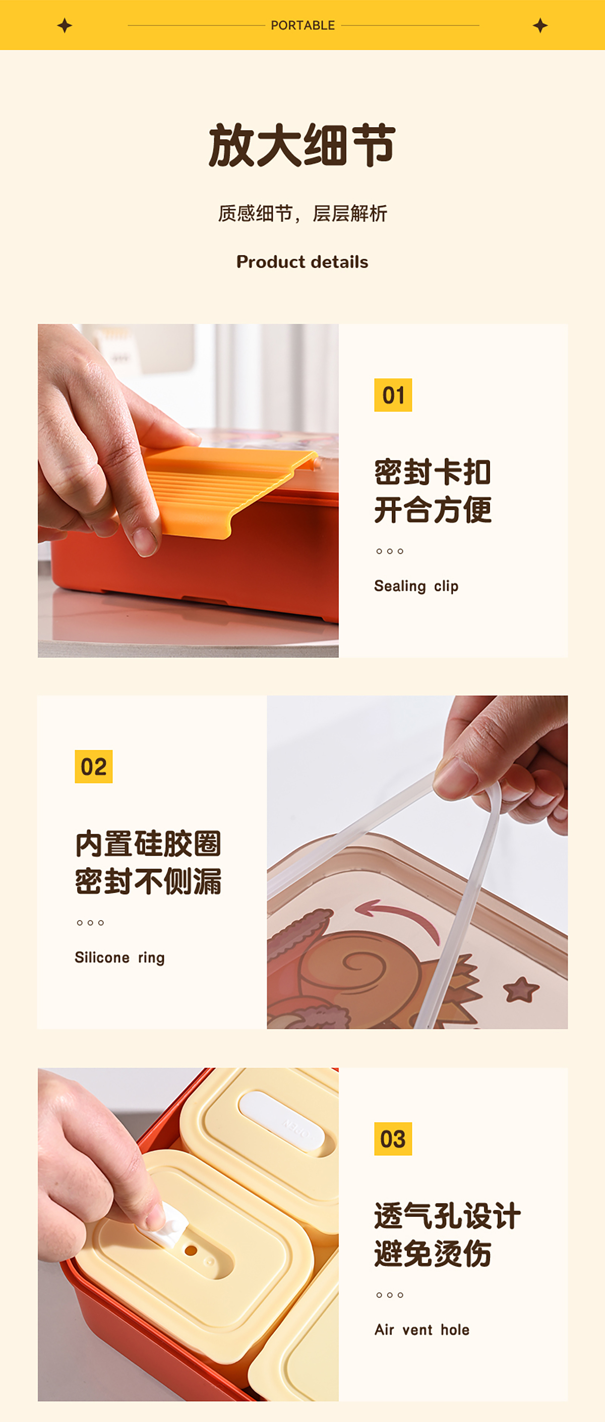 Size: 221*151*70mm/大內(nèi)盒470ml/小內(nèi)盒165ml*2